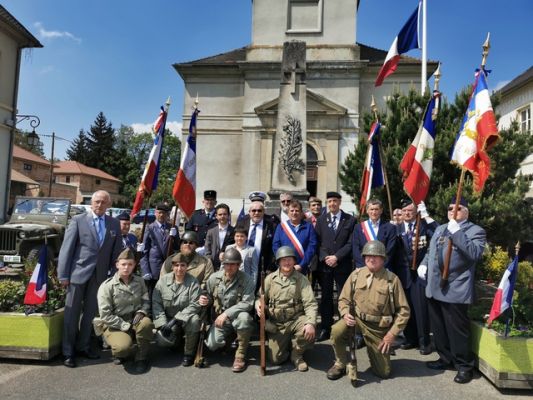 Claude GRIENENBERGER a assuré le protocole de cette cérémonie en présence de 5 porte-drapeaux. Étaient également présents les membres du conseil municipal, la brigade verte, M. Alain ZOIA avec l’association Histoire et Mémoire d’Alsace, accompagné de membres en uniforme de la deuxième guerre mondiale, des présidents d’associations locales, la chorale et la population de Walheim. Tous se sont retrouvés autour du monument aux morts pour un moment de recueillement.